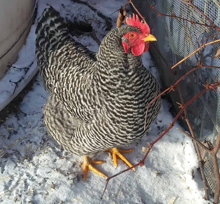 Our Barred-Rocks tend to handle the cold weather very well. Chickens will lose some of their body heat through their combs during the colder months. If it’s really cold, they will hide their head under a wing when sleeping to keep the comb a little warmer.